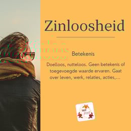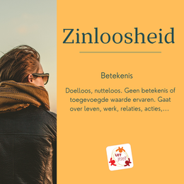 Soms kan je het leven als zinloos ervaren. Je voelt geen toegevoegde waarde meer in je job; je voelt jezelf helemaal nutteloos en waardeloos; je ziet de zin van het leven niet meer in; je maakt je zorgen over hoe het er nu aan toe gaat in de wereld en je gelooft niet meer in het goede van de mens.